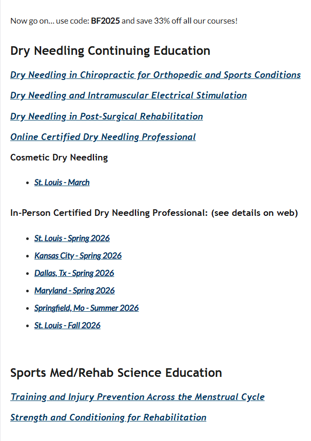 Join over 280 Certified Dry Needling Practitioners and enroll in an upcoming Dry Needling Course